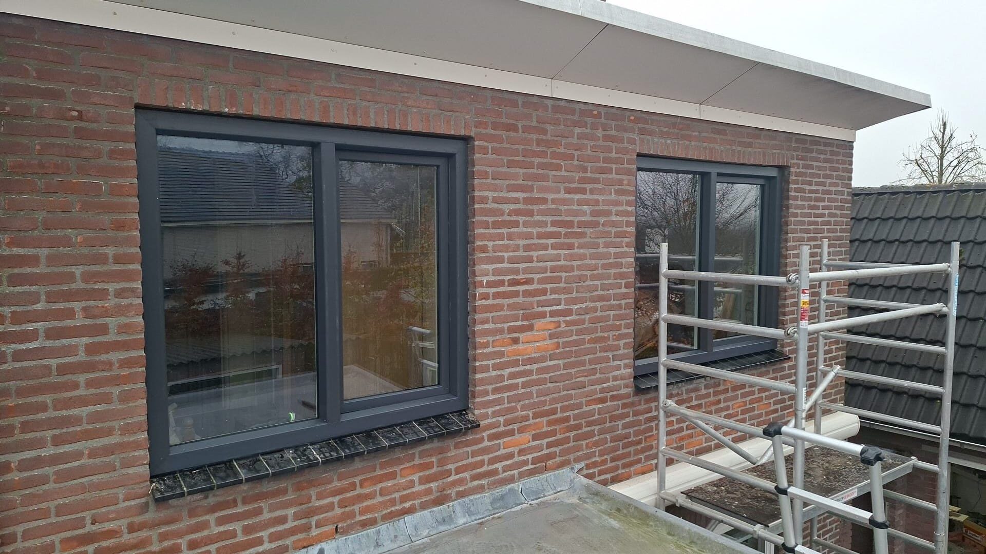 Voor dit project hebben we antraciet kunststof kozijnen geplaatst die perfect aansluiten bij de uitstraling van de woning. De donkere, strakke afwerking zorgt voor een moderne look, terwijl het materiaal zelf staat voor duurzaamheid en onderhoudsgemak.